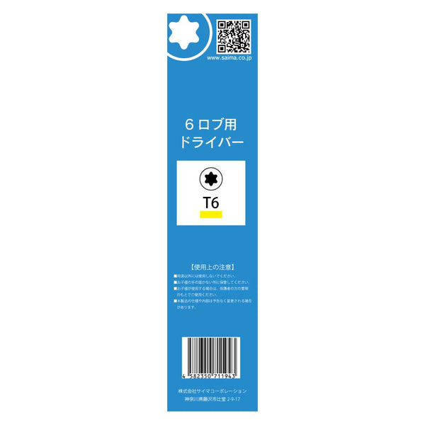 6-ロブ用 T6 ハンドドライバー(黄) 1本